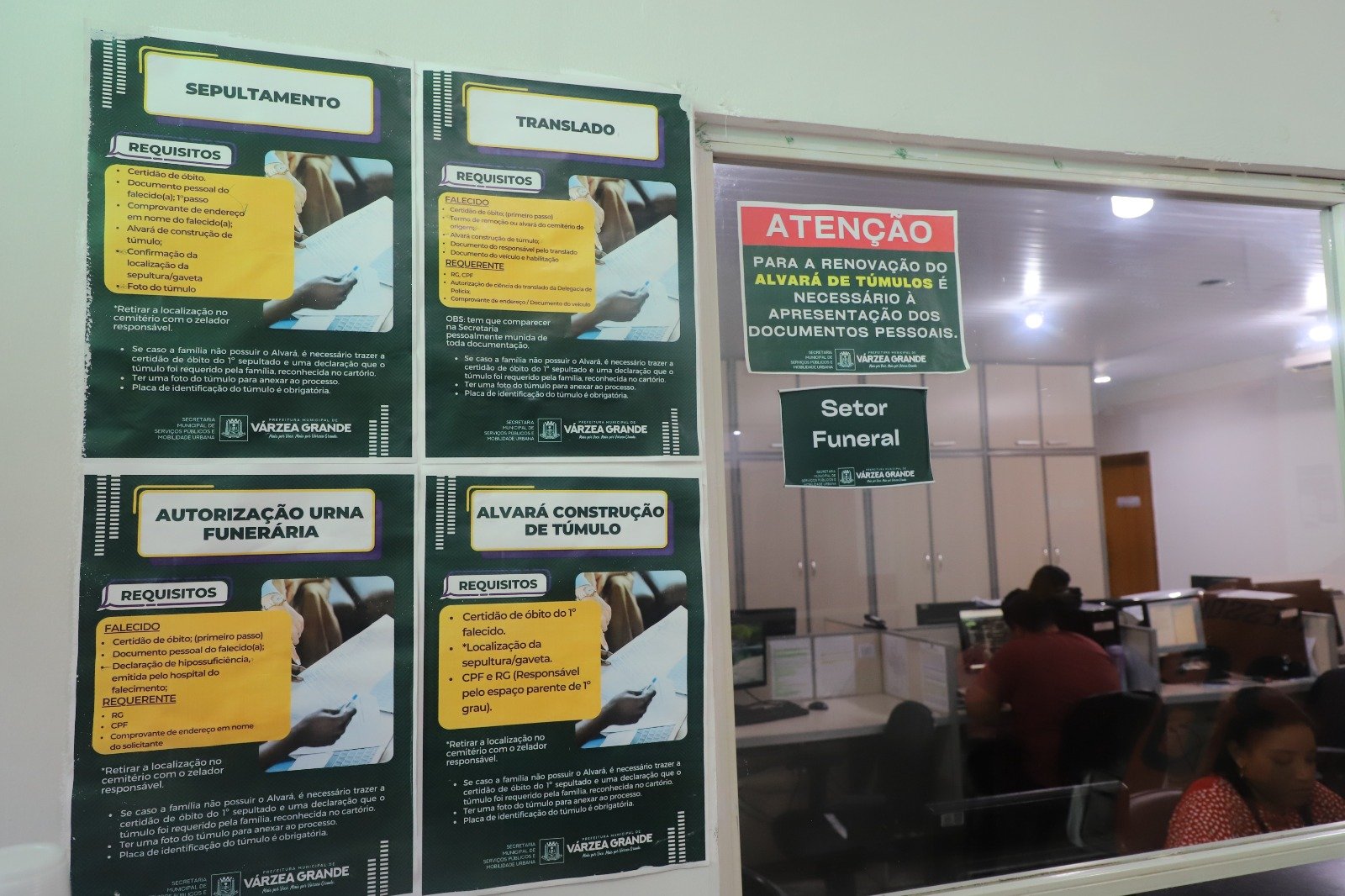 O Setor de Funeral da Secretaria de Serviços Públicos e Mobilidade Urbana de Várzea Grande está orientando os moradores sobre a renovação do Alvará de Túmulos nos 13 cemitérios municipais. A taxa anual, no valor de R$ 116,28, equivalente a 3UPFs (Unidades Padrão Fiscal), é obrigatória para todos que possuem familiares sepultados nestes locais.