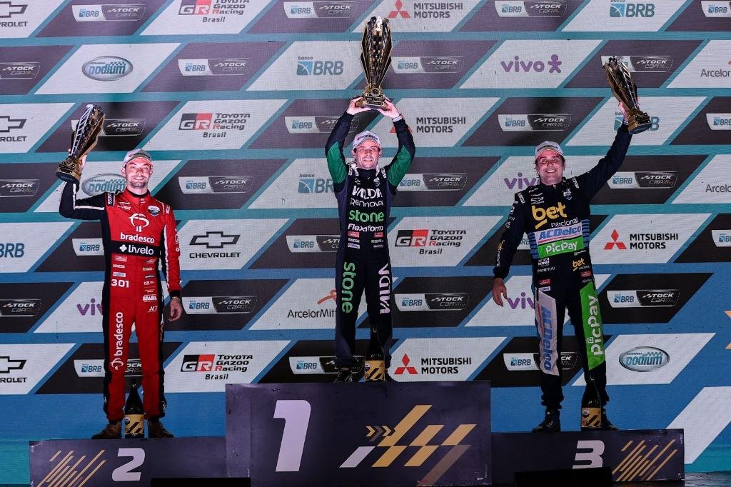 O pódio foi completado por Raphael Reis, segundo colocado, e Cacá Bueno, em terceiro. Raphael comemorou o resultado que marca sua estreia na Stock Car. “É meu ano de estreia e estava sendo um ano difícil. Esse pódio é um sonho. A pista está aprovada, disputando para ser uma das melhores do Brasil”, afirmou.