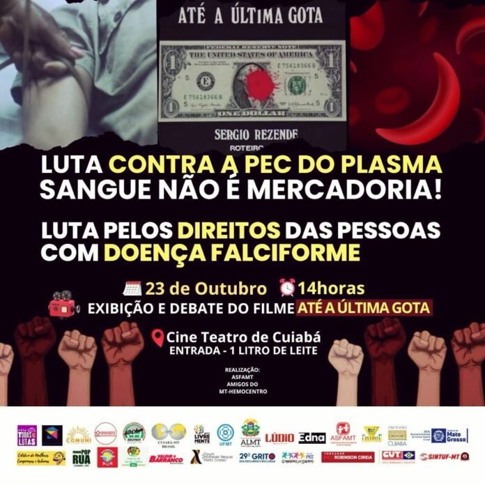 Para evidenciar os riscos e informar a população sobre isso, vai acontecer HOJE, 23/10/2023, às 14h (horário local), 15h em Brasília, o vídeo-debate sobre o filme “Até a última gota”, gentilmente cedido pelo diretor Sérgio Rezende. Ele vai estar online para conversar conosco sobre suas impressões a respeito de como as questões do sangue foram tratadas ao longo do tempo no Brasil. O filme tem início com a morte de um doador de sangue, após doar sangue como forma de sustentar a família, rotineiramente, sem critério algum que assegurasse a sua própria saúde – e isso salienta a realidade sobre a ausência total de políticas públicas de saúde no início da década de 1980, quanto à Hemoterapia e Hematologia no Brasil, ou seja, cuidados com o ciclo do sangue, os doadores, pacientes e trabalhadores da área.