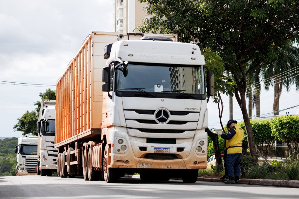 Agentes da Secretaria de Mobilidade Urbana autuaram seis caminhões na tarde desta sexta-feira (14) por circularem em via pública fora do horário permitido, infringindo o Artigo 187 do Código de Trânsito Brasileiro (CTB). Os motoristas não apresentaram a Autorização Especial de Trânsito (AET), documento necessário para a circulação de veículos pesados quando necessário.