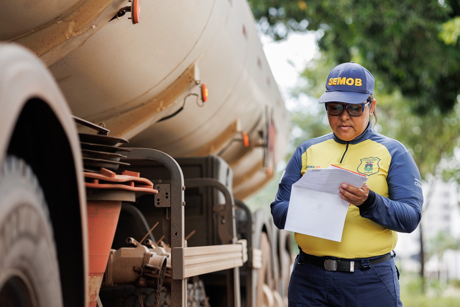 Agentes da Secretaria de Mobilidade Urbana autuaram seis caminhões na tarde desta sexta-feira (14) por circularem em via pública fora do horário permitido, infringindo o Artigo 187 do Código de Trânsito Brasileiro (CTB). Os motoristas não apresentaram a Autorização Especial de Trânsito (AET), documento necessário para a circulação de veículos pesados quando necessário.