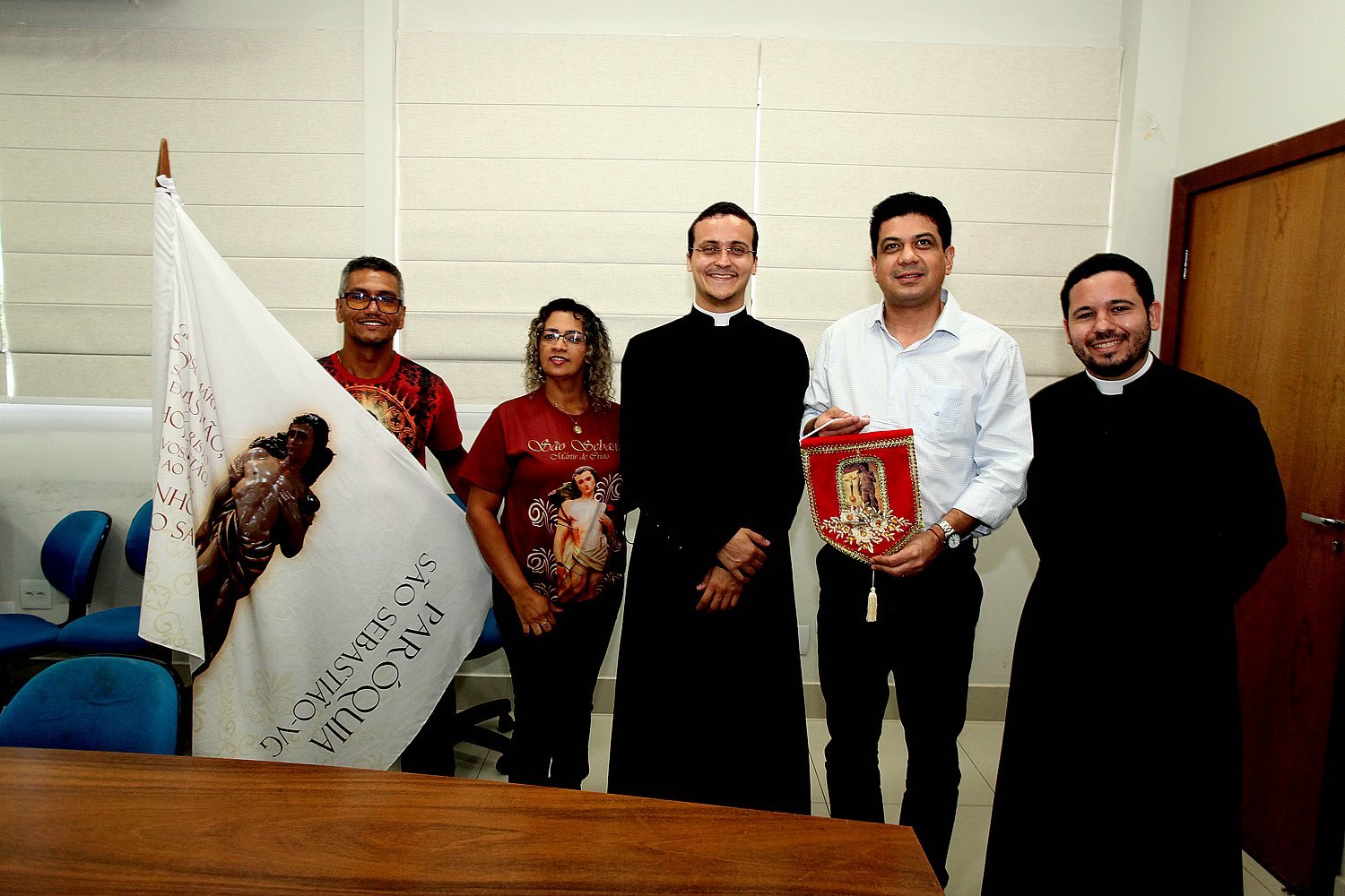 Como parte do cronograma, representantes da Paróquia visitaram o prefeito com bandeira do santo nesta terça-feira (17)