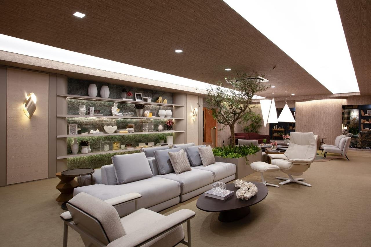 A inspiração deste espaço veio da natureza exuberante das oliveiras nativas de Puglia e da pureza dos campos brancos de algodão, surge o Lounge Abbraccio Vitale. Este espaço acolhedor é um convite para trocar ideias, compartilhar momentos especiais e desfrutar do conforto aliado à sofisticação em um design contemporâneo. A fusão perfeita entre duas marcas renomadas, Natuzzi Edition e Aline Luccini, resulta em um ambiente único que satisfaz os mais exigentes desejos de beleza e conforto através da paixão pela qualidade italiana e da tecnologia inovadora. Cada projeto assinado por Aline Luccini traz uma arquitetura atemporal que se harmoniza com o estilo de vida daqueles que vivem neste local privilegiado. Oliveiras simbolizam resistência, vitalidade e longevidade – características presentes no Lounge Abbraccio Vitale, onde todos são recebidos com abraços calorosos para criar memórias duradouras.