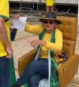 Invasores retiram cadeiras dos ministros do STF de dentro do plenário da Casa — Foto: Reprodução