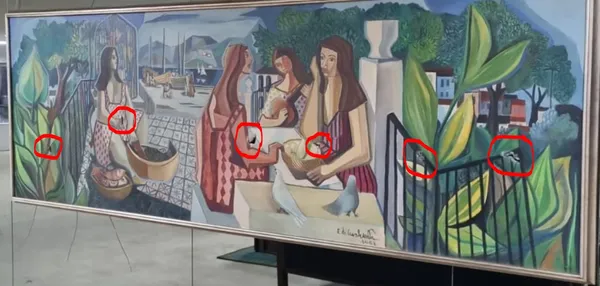 Bolsonaristas terroristas fazem pelo menos seis rasgos na tela “As Mulatas”, do Di Cavalcanti, que fica no terceiro andar do Planalto — Foto: Reprodução/Twitter