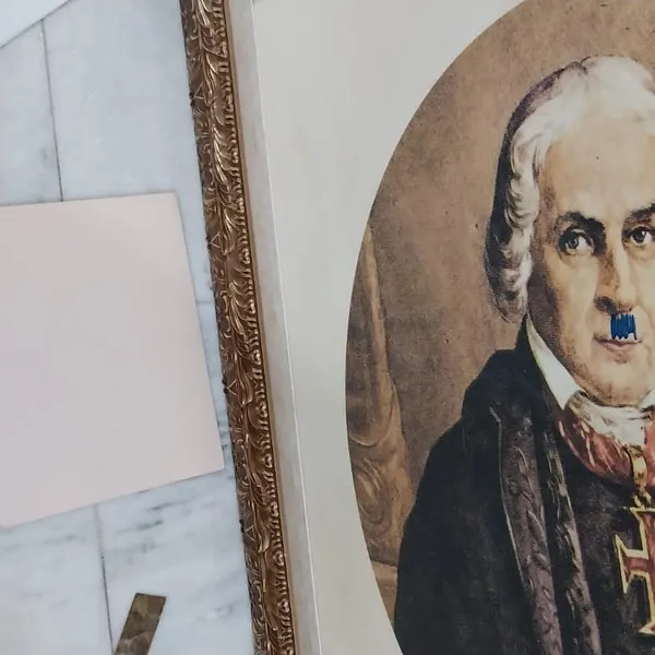 Quadro vandalizado por bolsonaristas terroristas — Foto: Reprodução